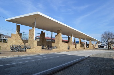 白く90メートルにも伸びたフラットな大屋根の下にコンコースや待合室・自転車置き場など機能的に配置された独特な存在感のある建物で、一般公募型のコンペにより(株)TNA(武井誠+鍋島千恵)が受賞し設計された。審査委員長は隈研吾が務めた。