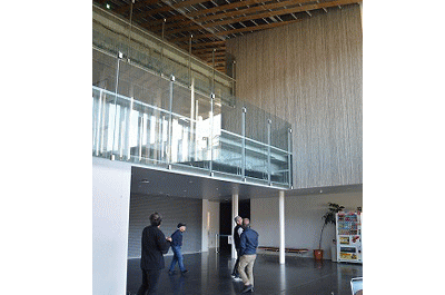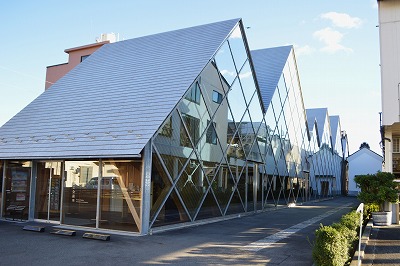 平入で山型の大屋根が奥へと繰り返し連続した特徴ある建物で、製糸の街並みに配慮されている。木造トラスの斜め構造壁と全面カラスの中に格子が組まれており、開放的で外部へのつながりを持たせた意匠となっている。
