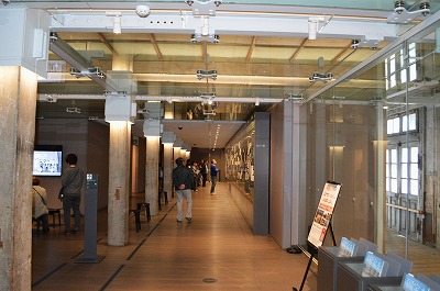 保存整備(耐震改修)工事が6年にもわたり完了した1階は、耐震補強の鉄骨を骨組みにしたガラス張りの部屋を整備し、多目的ホールと資料展示ギャラリ―となっている。
